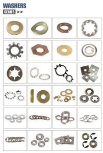 All washers types: Flat washer, Spring washer, EDPM washer, Square washer, Wave washer, Curve washer,Spherical washer, Internal tooth lock washer, Extenal tooth lock washer, F436 Structural washer, Internal retaining ring for bores,conical spring washer, countersunk washer, square wedge-shaped washer.